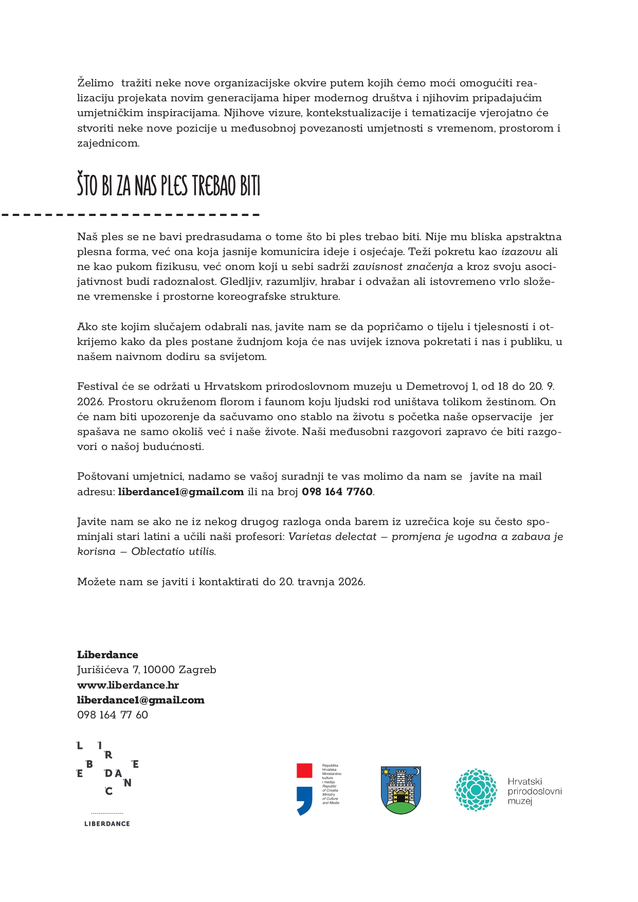 Liberdance je umjetnička organizacija koja se bavi edukacijom, produkcijom i postprodukcijom na području suvremenog plesa i kazališta.